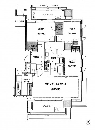リビングは18帖で、バルコニーもついております。