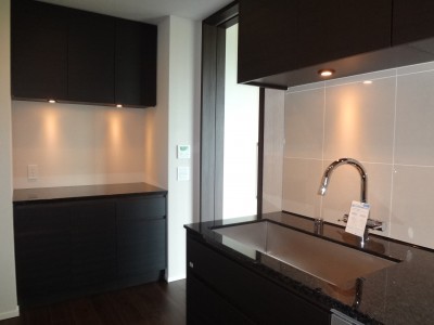 広々とした大理石カウンター、収納もたっぷりです。