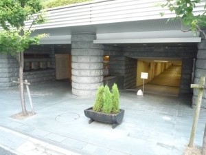 玄関前は黒い御影石張りとなっていて、