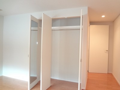 収納扉の裏側には大きな鏡がついているので(どの部屋も)